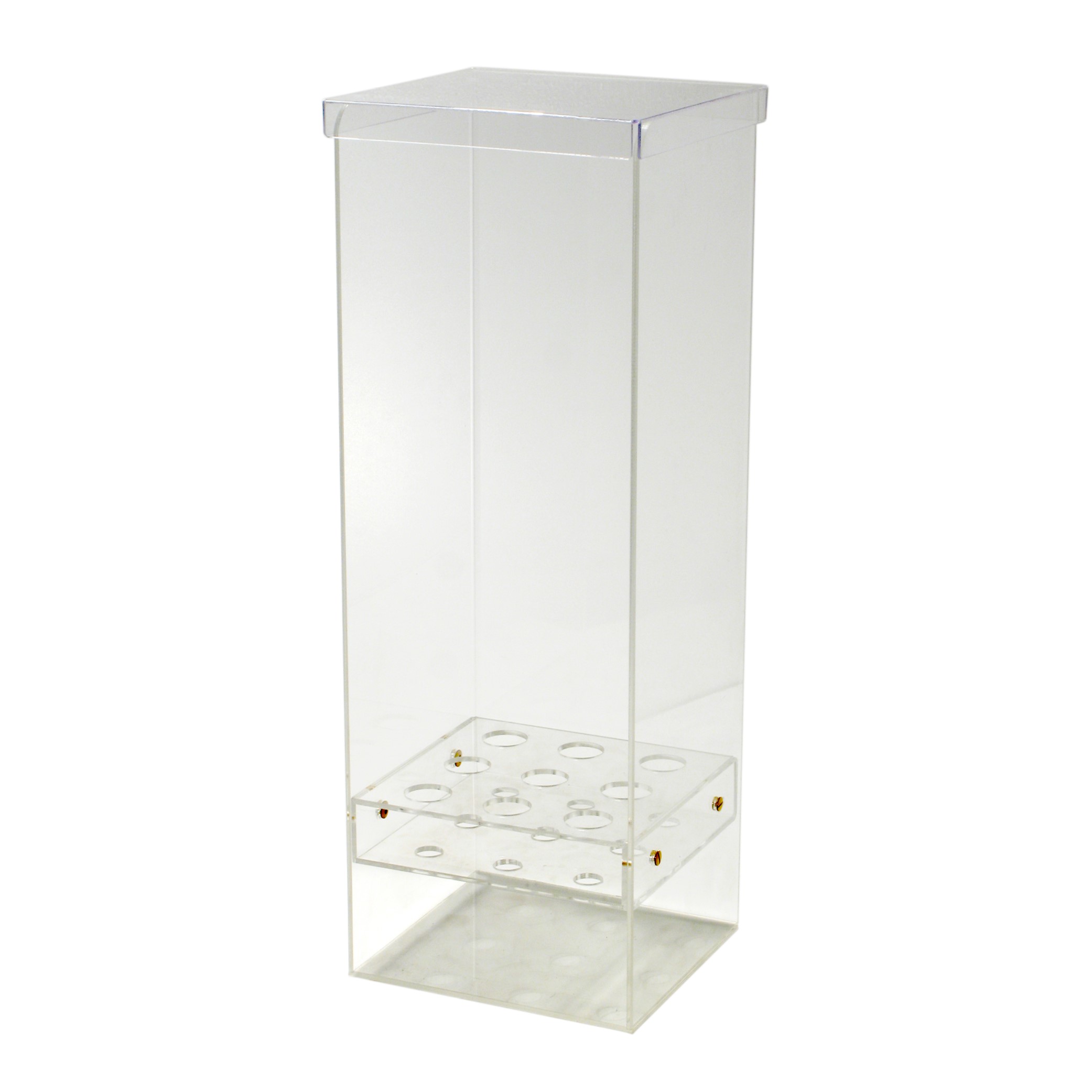 Portaconi Verticale Trasparente con piatto forato, regolabile in altezza per eventuale posizionamento del cassetto, completo di Coperchio igienico.
