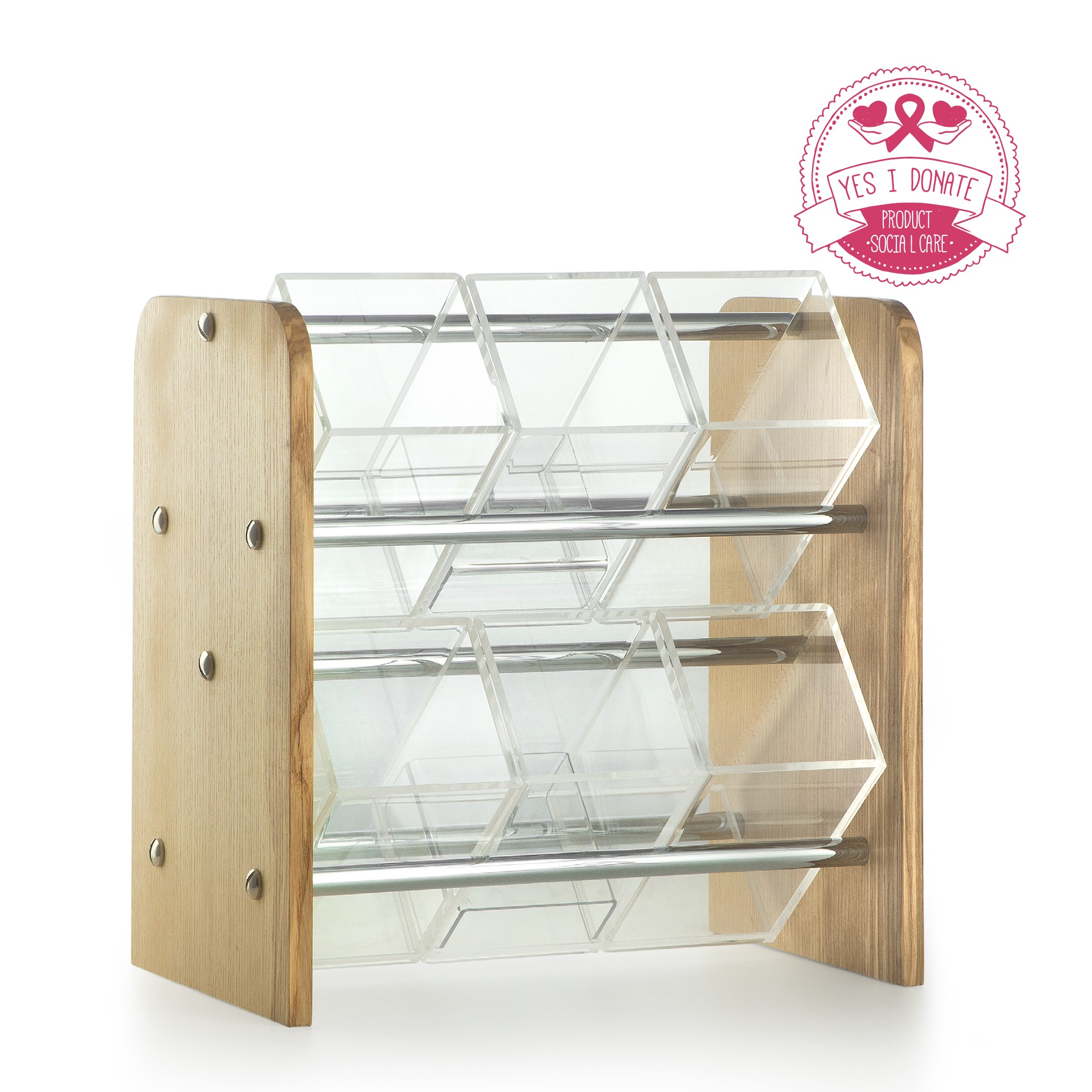 Portacucchiaini e Cannucce in Legno e Metallo Silver completo di 6 cubetti. Forme creative per il praticissimo portacannucce e cucchiaini. Posizionamento obliquo e bifacciale dei cubetti. In dotazione, cavallotto di rialzo per i cucchiaini più corti.