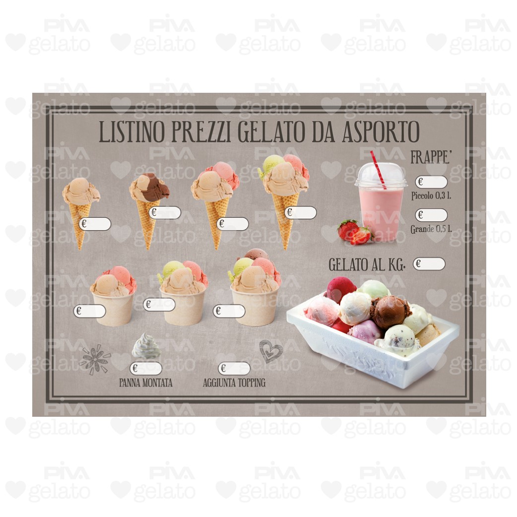 Poster/prezzario da parete monofacciale in PVC, stampa standard in HD, da banco o parete.
