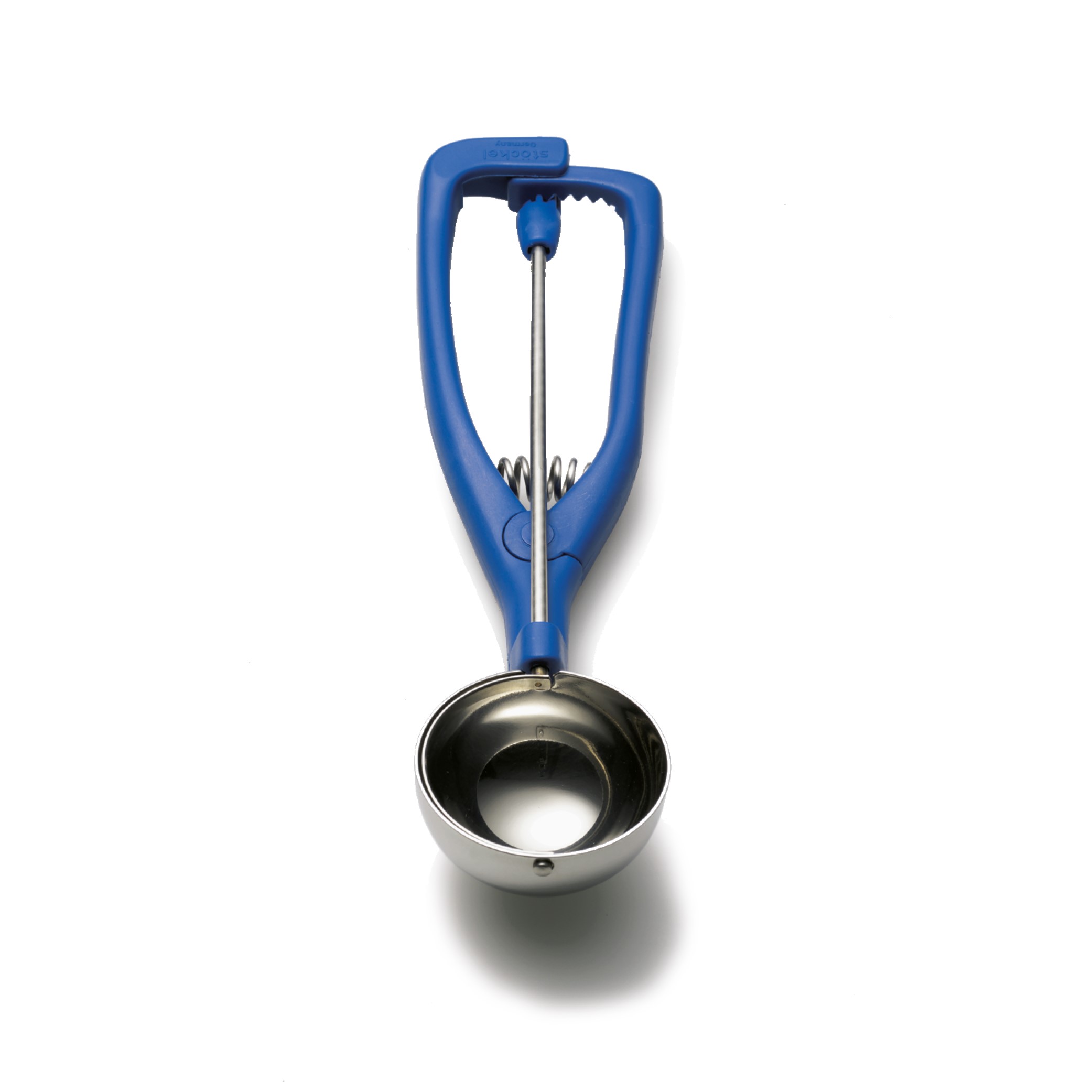 Porzionatore Professionale Tedesco in Acciaio INOX con Manico in Plastica Azzurra.